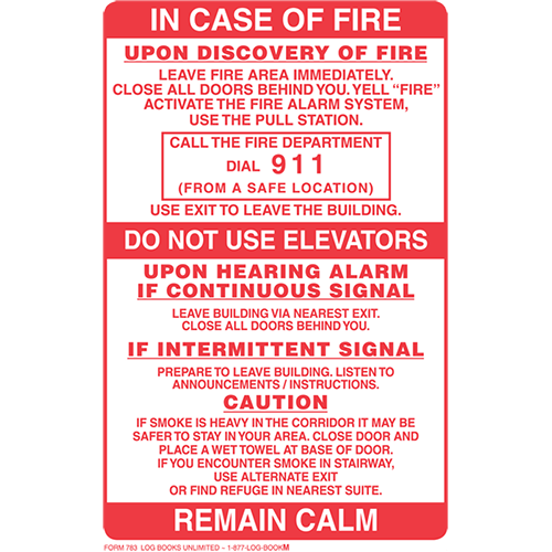 - Elevator Safety Reminder: Instructs not to use elevators during a fire